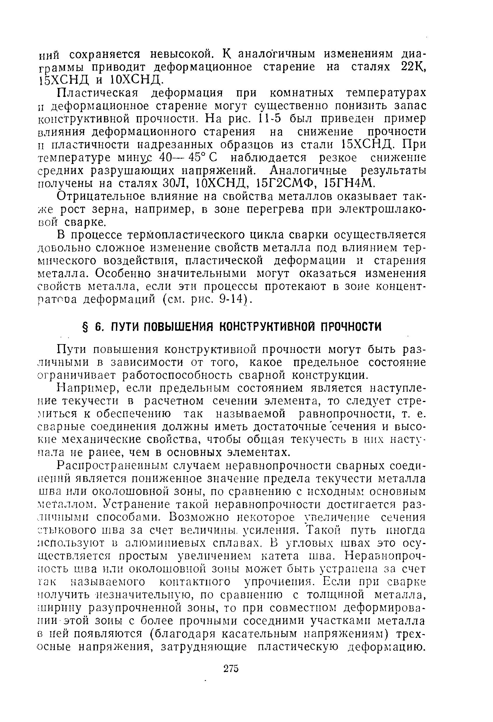 Пластическая деформация при комнатных температурах и деформационное старение могут существенно понизить запас конструктивной прочности. При температуре минус 40 - 45 град С наблюдается резкое снижение средних разрушающих напряжений.