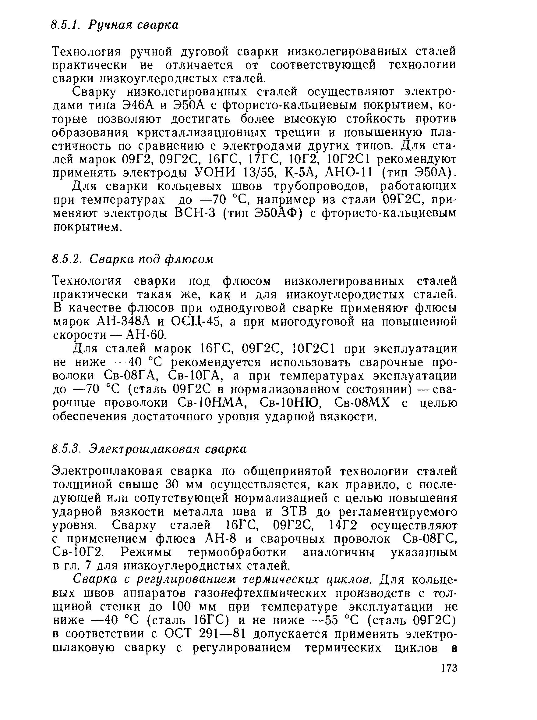 Для сталей марок 16ГС, 09Г2С, 10Г2С1 при эксплуатации не ниже - 40С рекомендуется использовать сварочные проволоки Св-08ГА, Св-10ГА, а при температурах эксплуатации до - 70С (сталь 09Г2С в нормализованном состоянии) - сварочные проволоки Св- 10HMA, Св-10НЮ, Св-08МХ с целью обеспечения достаточного уровня ударной вязкости.